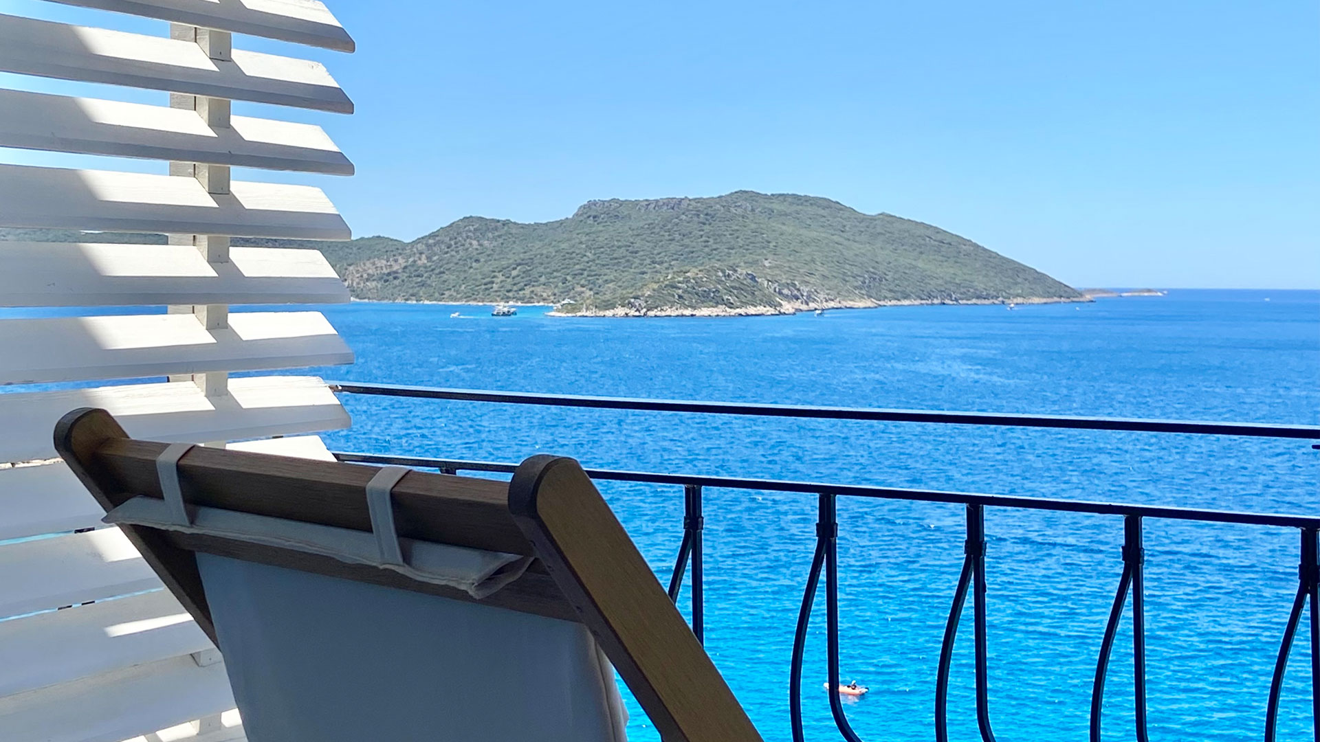 32 M2 büyüklükte yaşam alanı, balkonunda Eşsiz Akdeniz ve Meis Adası manzarasına sahip... Akdeniz mimarisine sahip mavi ve beyazın hakim olduğu odalar huzurun sembolü...