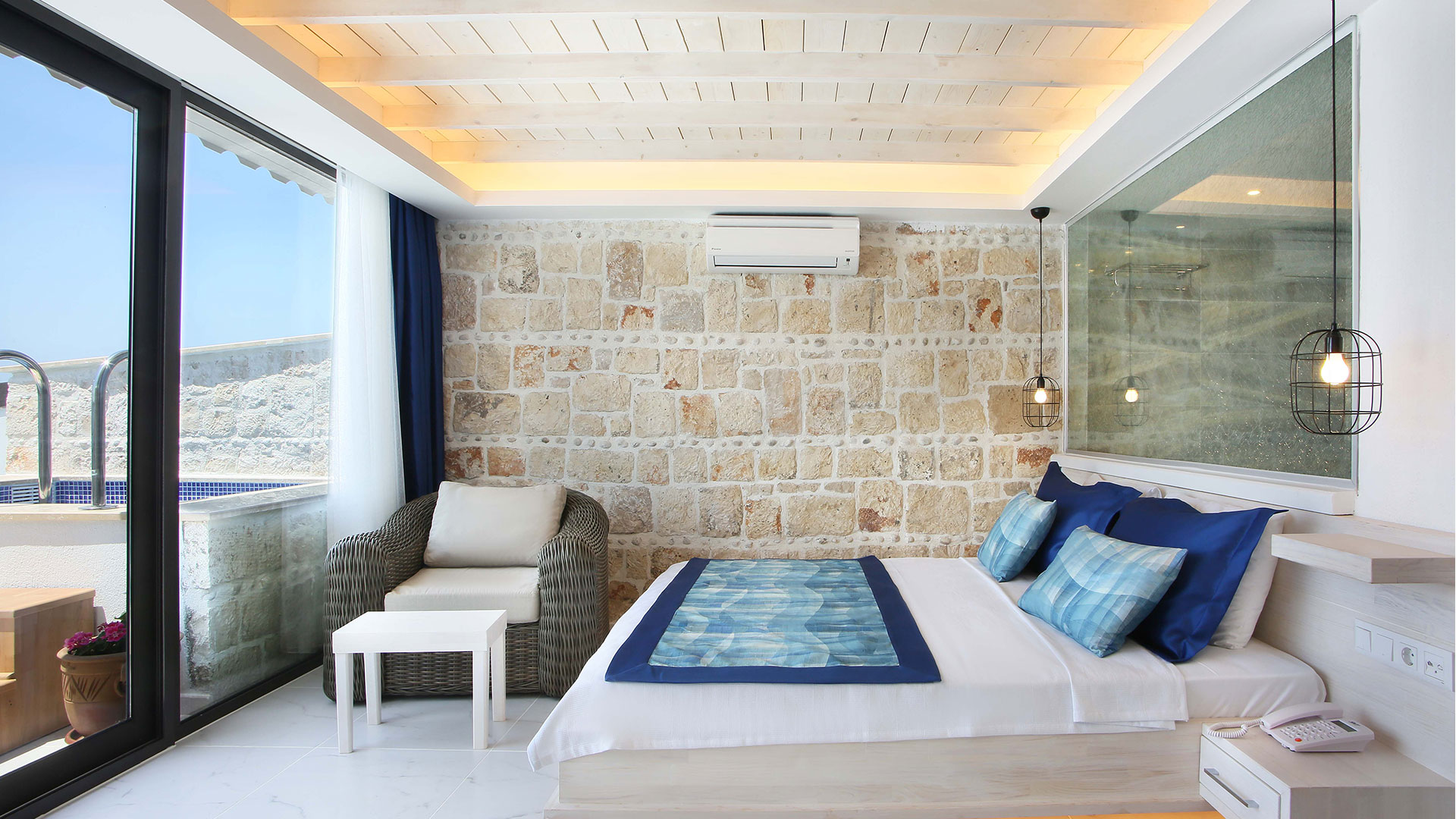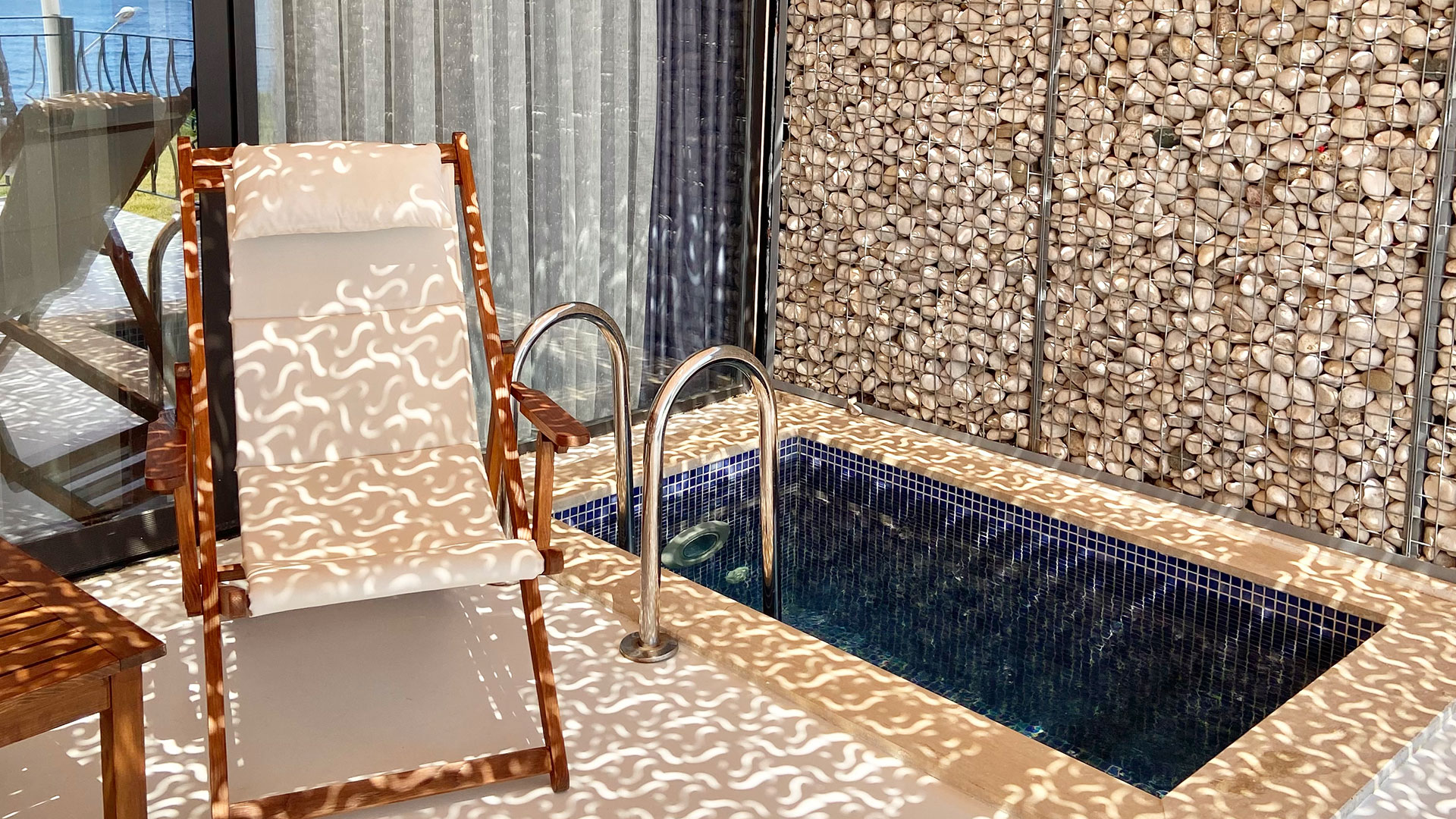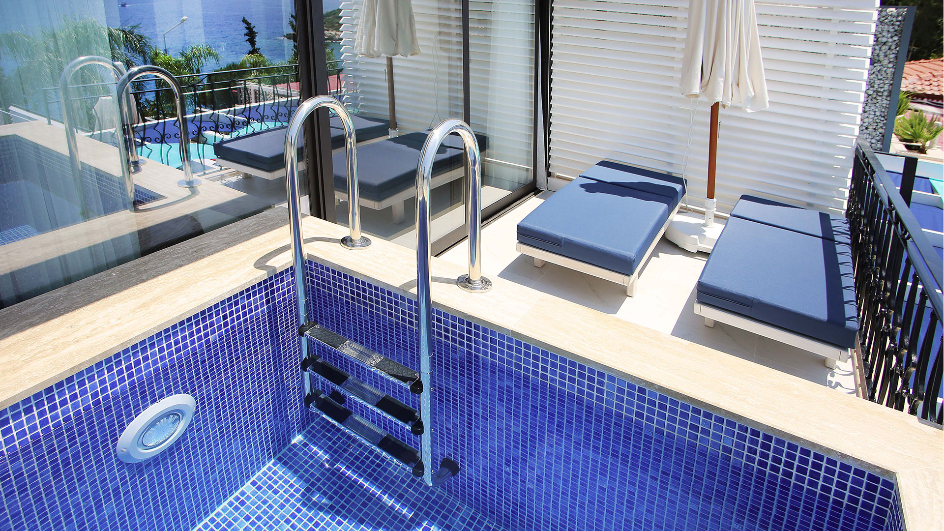 Full Deniz Manzaralı Terasında 2 adet Şezlong, Salıncak, Oturma Grubu